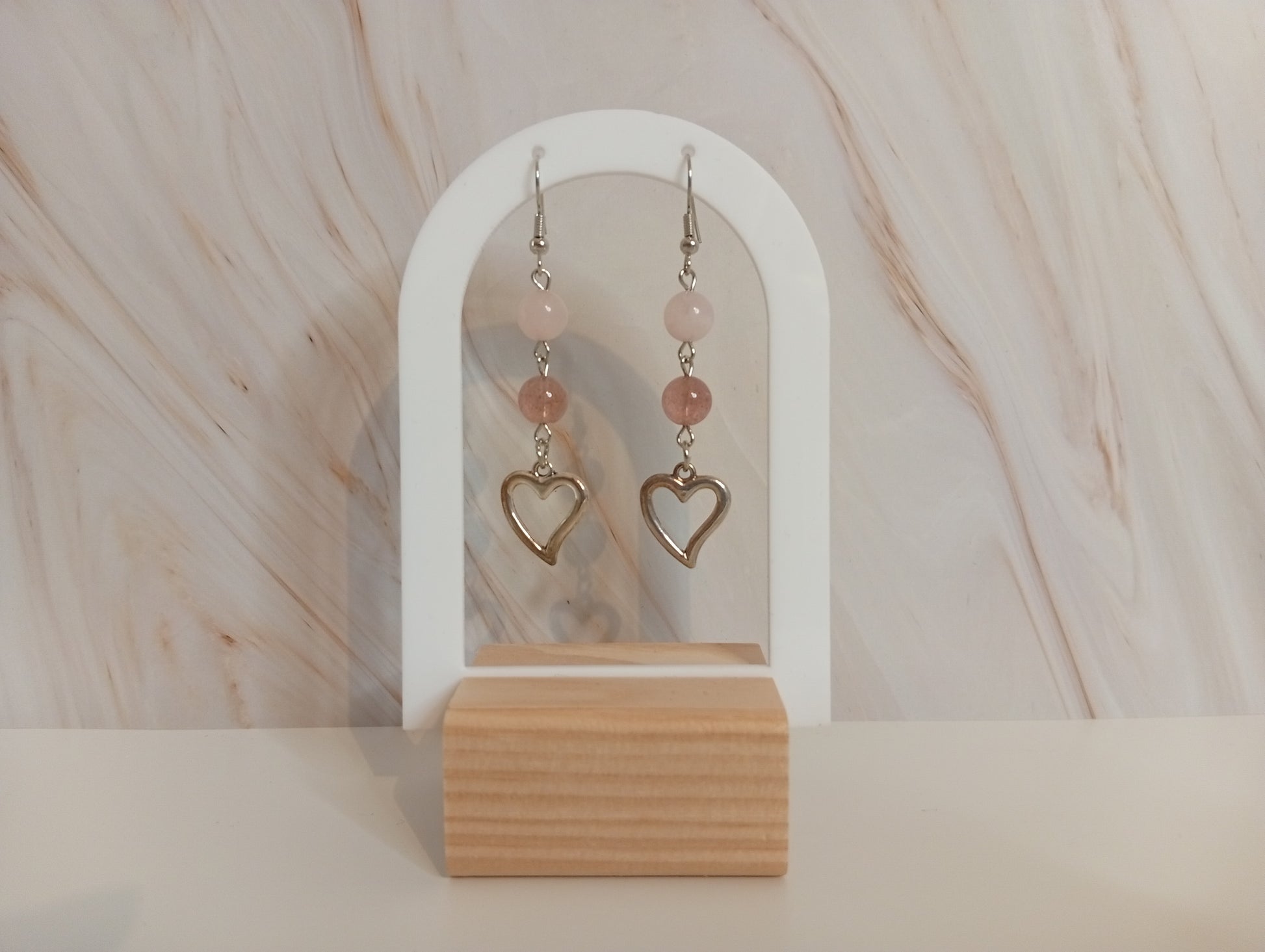 Ohrringe mit Rosenquarz & Erdbeerquarz – nickelfreie Edelstein-Ohrringe, 5 cm